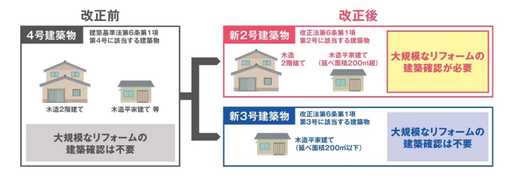 200㎡を超える平屋や、2階建ては大規模修繕や模様替も確認対象となりました