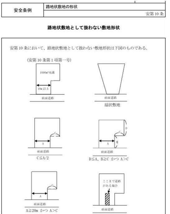 一方で「路地状敷地として扱わない敷地形状」の取り扱いは公開されている