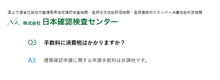 引用;よくあるご質問 | 確認申請 – 株式会社 日本確認検査センター こちらの指定確認検査機関では、非課税であることを明記しています。