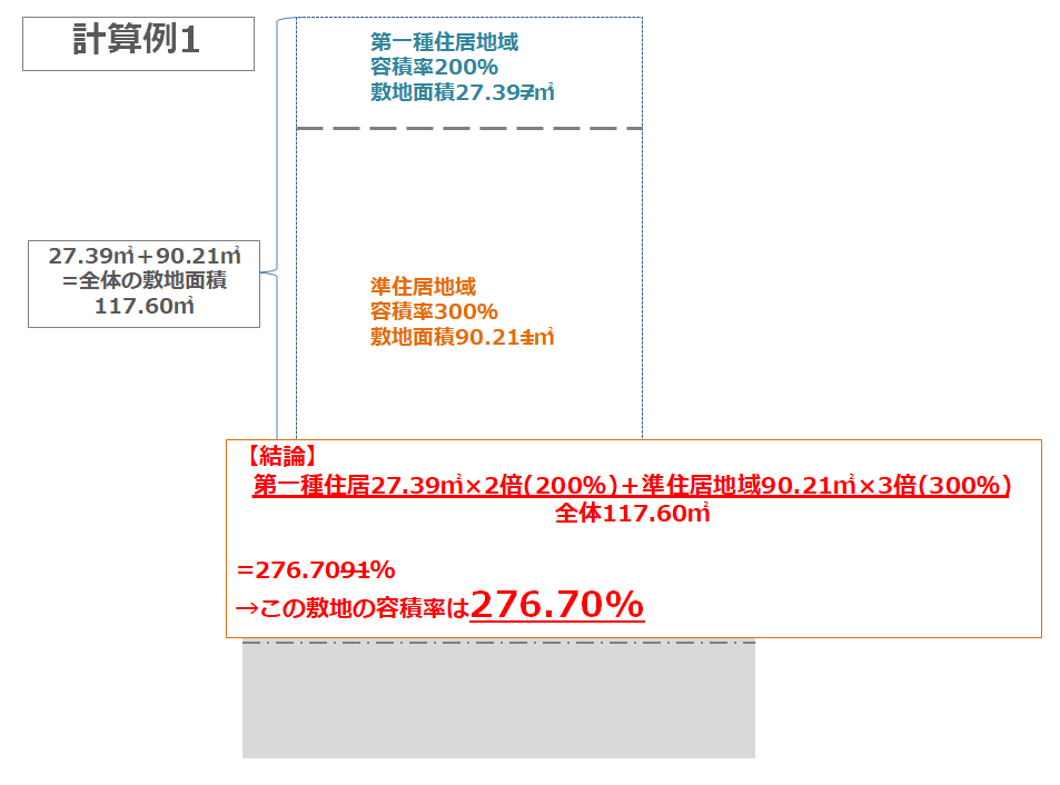 用途地域が異なり、容積率がそれぞれ違う場合は「加重平均(按分計算)」で求める