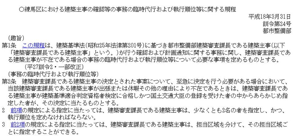 引用:練馬区「建築主事の確認等の事務の臨時代行および執行順位等に関する規程」