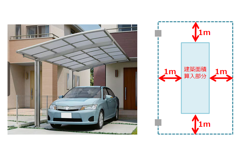カーポートは建築物に該当するため、建築面積が発生する。