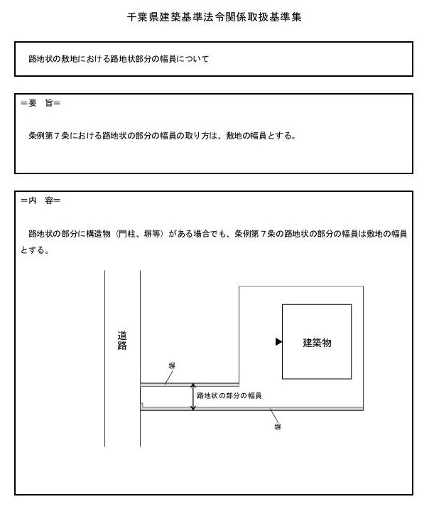 千葉県の基準集には、路地状敷地に関する取り扱いが2つ公開されています。