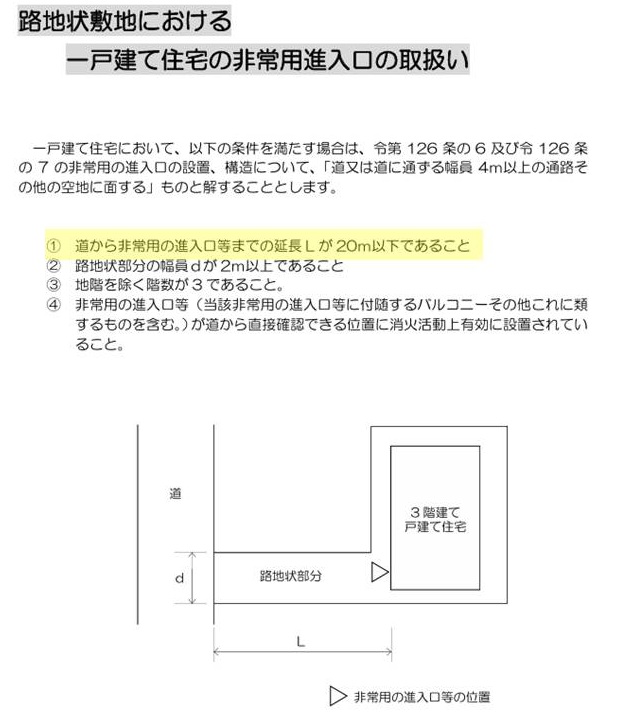 一方で、3階建ての住宅では「非常用代替進入口」が必要になるため、道路からその進入口までの距離を20m以内に収める必要があります。
