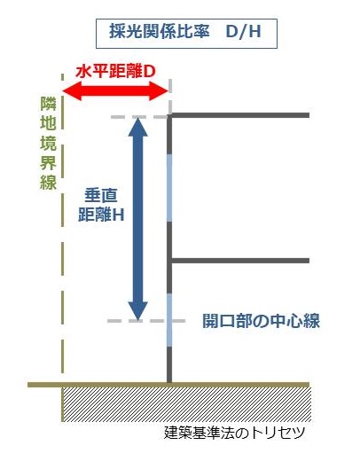 採光補正係数を算定する際、水平距離Dは隣地境界線までの距離が基本!