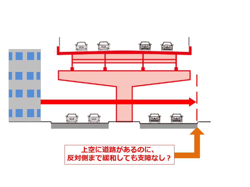 高架道路の場合は、行政庁や指定確認検査機関の取り扱いによって異なるため、注意が必要