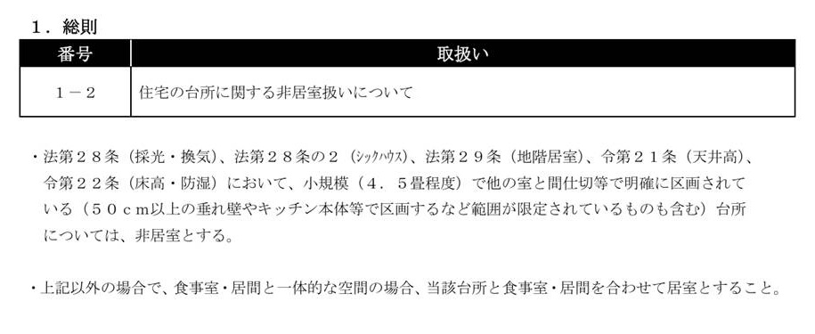 引用:前橋市「住宅の台所に関する非居室扱いについて」