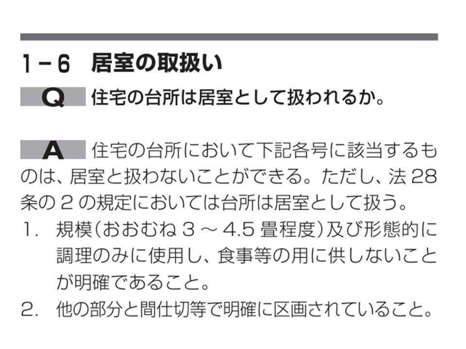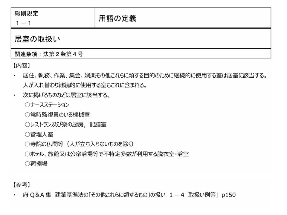 一般的な取り扱いに見えるが、「〇〇条は非居室に該当」と明確に条項を示していて参考になります