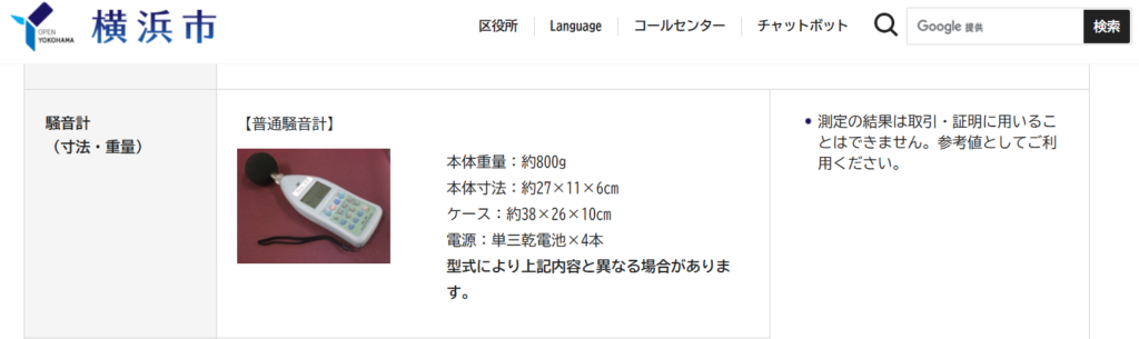 引用:騒音計・振動計の貸出 横浜市