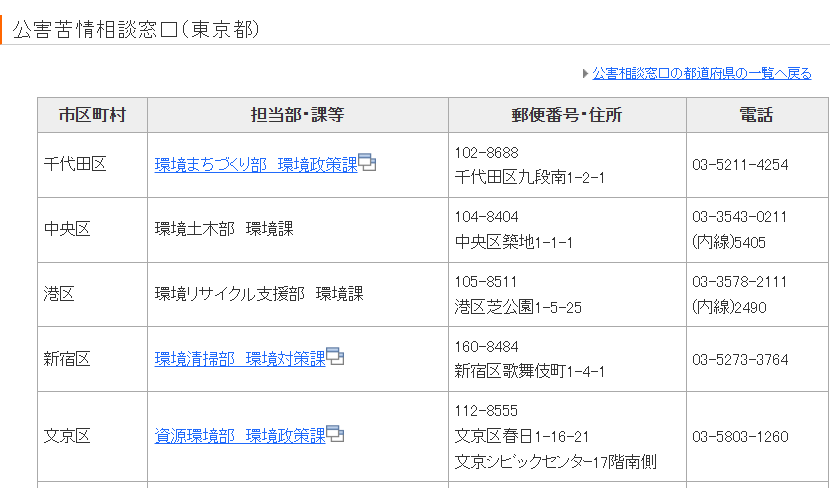 引用:総務省|公害等調整委員会|公害苦情相談窓口(東京都)