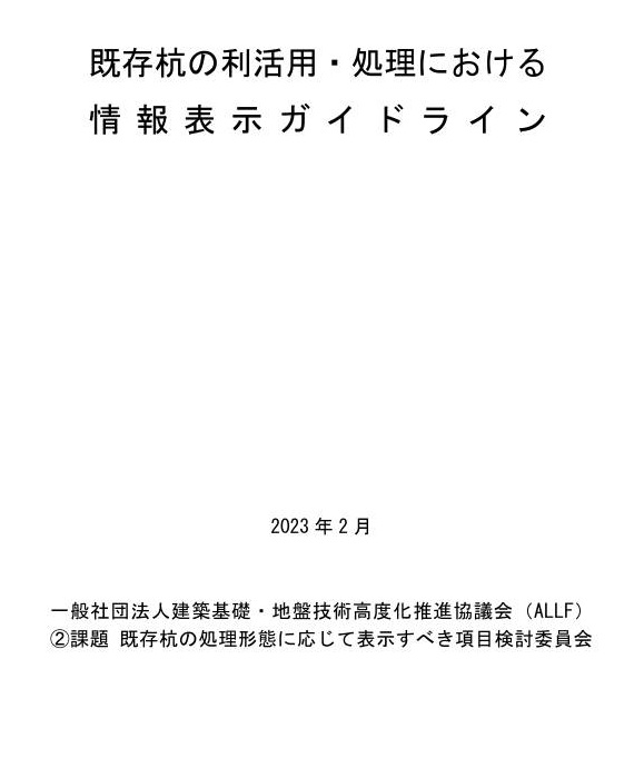 ![]() ![]() 既存杭の利活用・処理における 情報表示ガイドライン2023 | 作成:一般社団法人建築基礎・地盤技術高度化推進協議会 ポイント:既存ぐいを利用する建築物の設計のためのに解体時に残すべき情報等をとりまとめた資料 |