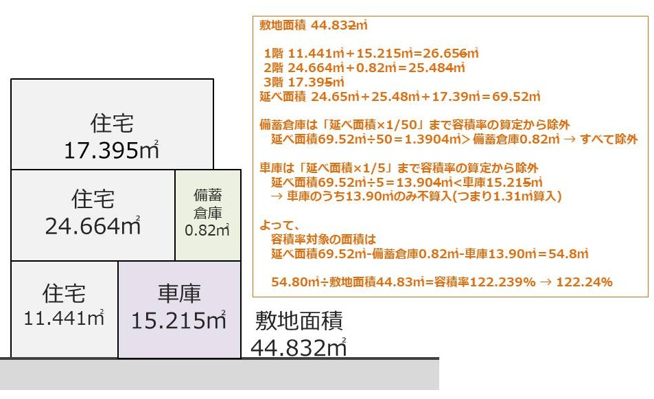 計算例①:車庫と備蓄倉庫を不算入するケース