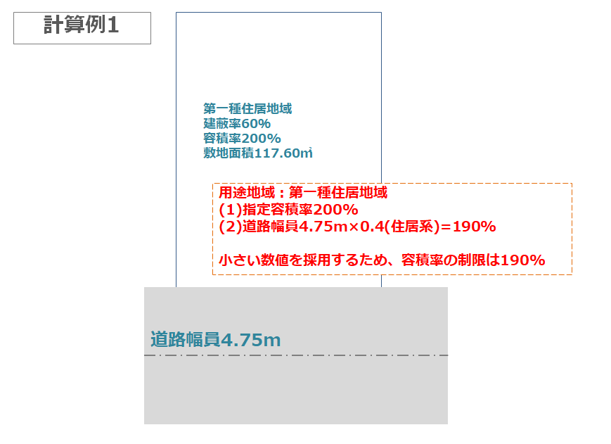 両者を比較して小さい数値が容積率の上限になる