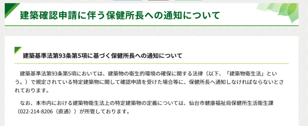 引用:建築確認申請に伴う保健所長への通知について|仙台市