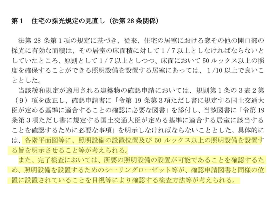 引用:国土交通省 照明設備の設置、有効な採光方法の確保の基準に関する意見募集の結果を一部抜粋 技術的助言では触れていない国交省の意見も明記されています。