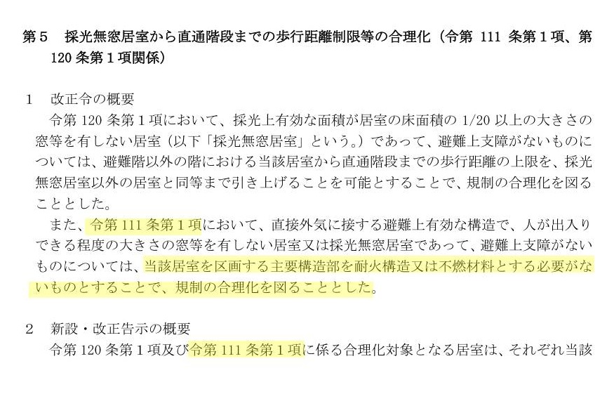 引用:国土交通省 施行令第111条 主要構造部を耐火構造等とする無窓居室の範囲の合理化 P.2