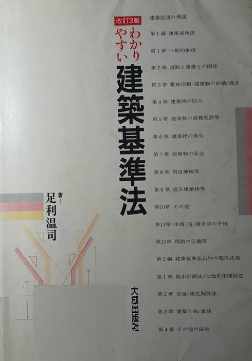 ![]() 改訂3版 わかりやすい建築基準法 | 筆者は元東京都職員であるため、行政の視点から一歩踏み込んだ説明がされている 行政実例や判例を交えた具体的な解説があり、筆者の説明であるか、行政実例・判例であるか明確に示されている 東京都安全条例についても若干の説明があり、東京都特有の規定が紹介されている 東京都内における指定や事例の有無についても記述されている 東京都における高度地区の指定の時期について記載がある 日影規制の審査について東京都通達(昭和53年8月18日都市局建築指導部)が紹介されている 危険物の算定方法やその考え方についても若干ではあるが説明があり、行政の実務に役立つ情報が提供されている 一歩踏み込んだ説明文があるため非常に面白いが、求める内容によっては「質疑応答集」の文献で十分に対応できる 足利温司 著 (元東京都庁) 出版社:大成出版社 出版日:1988年12月 | ★★☆☆☆ |