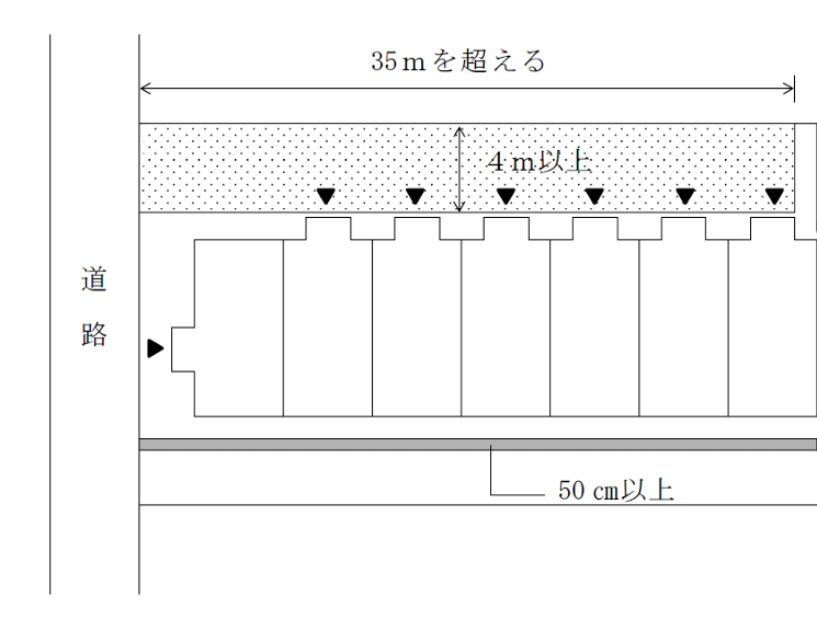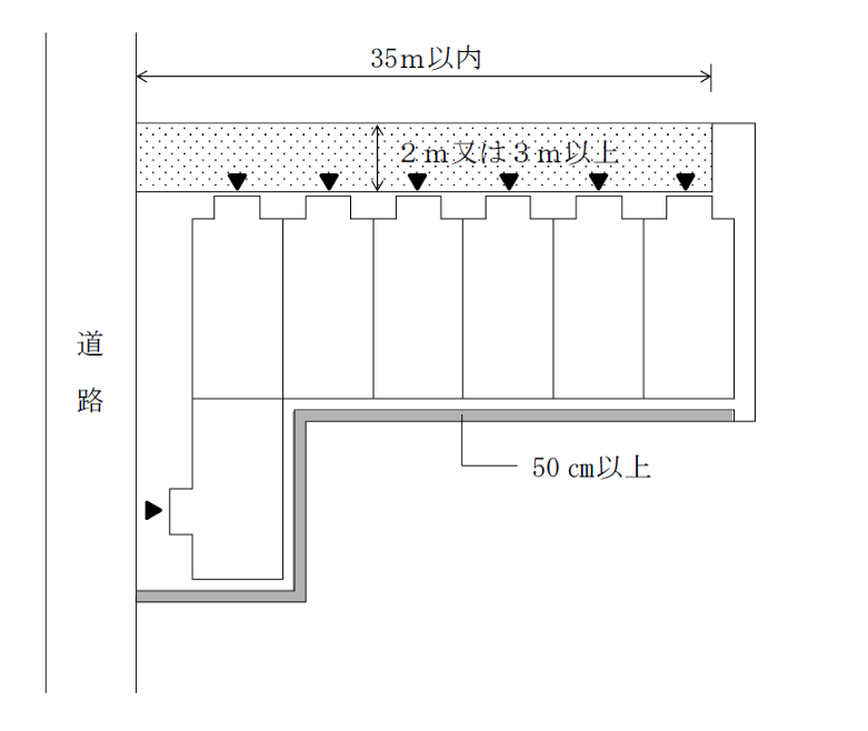 技術的助言の図では、さっきの2~4mの避難通路の裏側に50cm以上の通路があります