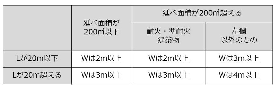 | 路地の長さLが20m以下 | 路地の長さLが20m超え |