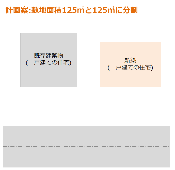 分割後の敷地で新築計画の確認申請を行う