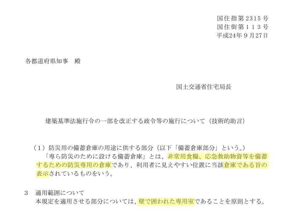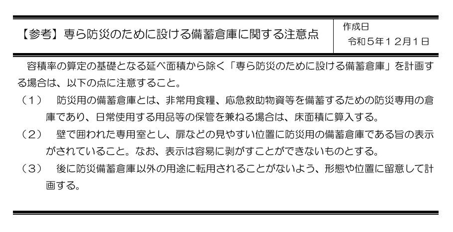 引用:荒川区 専ら防災のために設ける備蓄倉庫に関する注意点