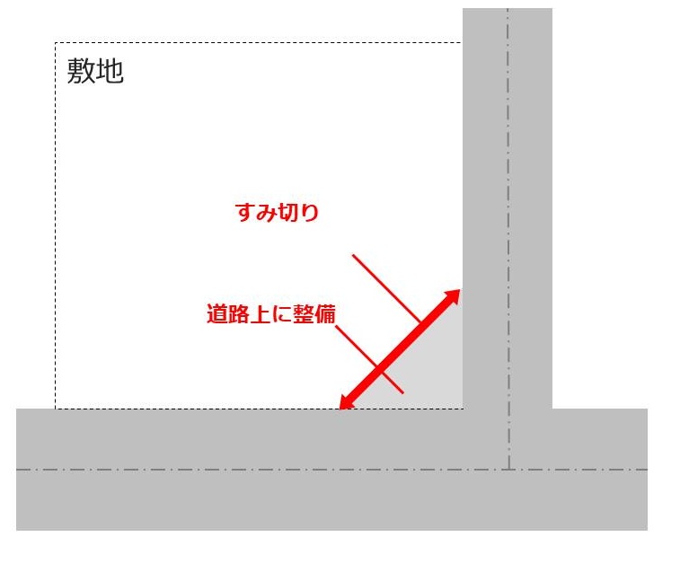 角地では見通し確保のため、法律や条例で「すみ切り」が求められることがあります