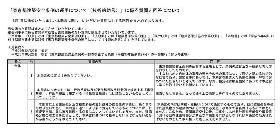 東京都から出されている技術的助言やQ&Aが4つあります。