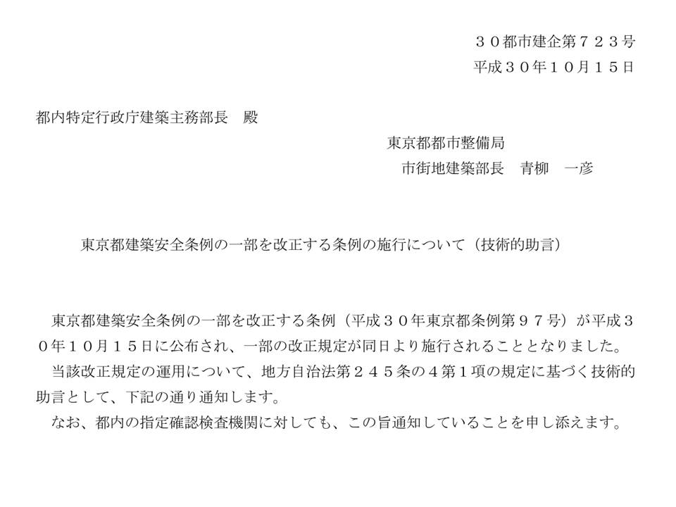 ①東京都建築安全条例の一部を改正する条例の施行について(技術的助言)