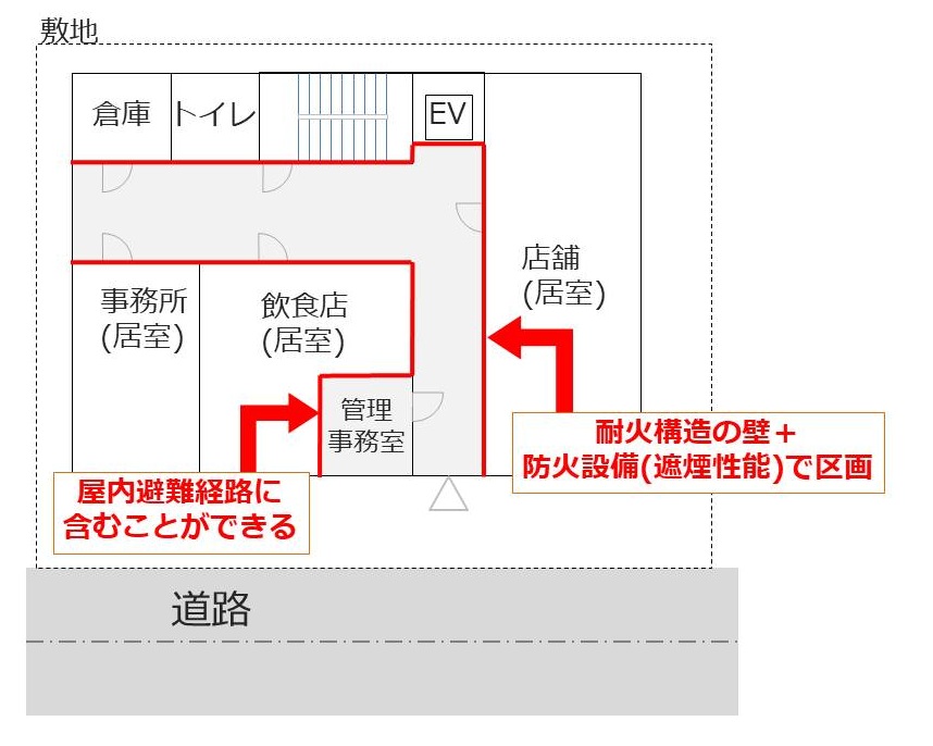 火を使うと、その管理事務室は屋内避難経路に含められません