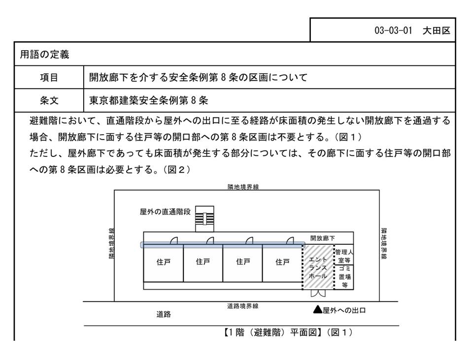 引用:大田区 開放廊下を介する安全条例第8条の区画について