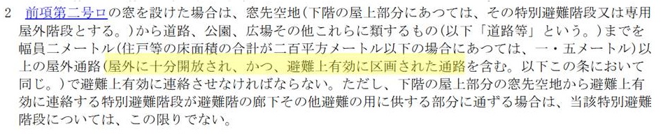 共同住宅では、「窓先空地」または「道路」に面した窓を設置することが必要