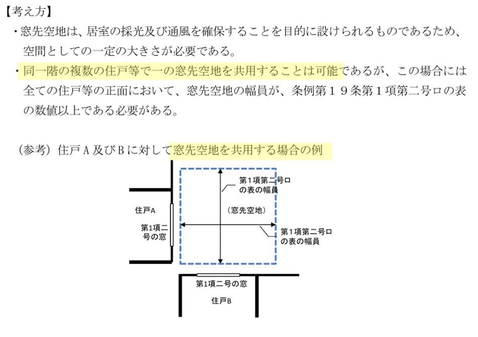 引用:新宿区 道路又は窓先空地に直接面する窓について