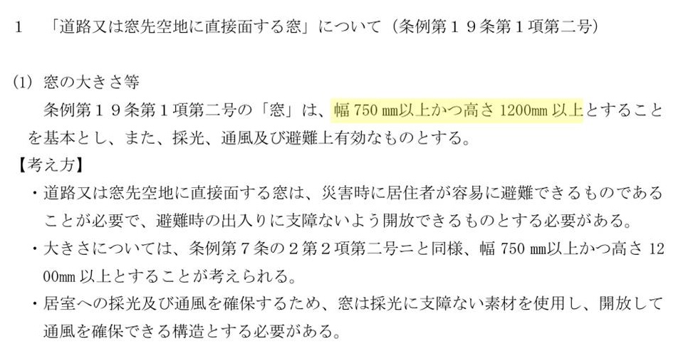 窓先空地の窓のサイズは幅750×高さ1200以上必要