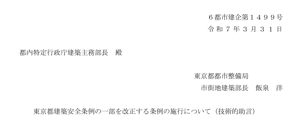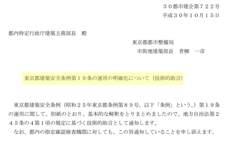 引用:平成30年東京都「東京都建築安全条例第19条の運用の明確化について(技術的助言)」 引用:令和7年東京都建築安全条例の一部を改正する条例の施行について(技術的助言)を抜粋